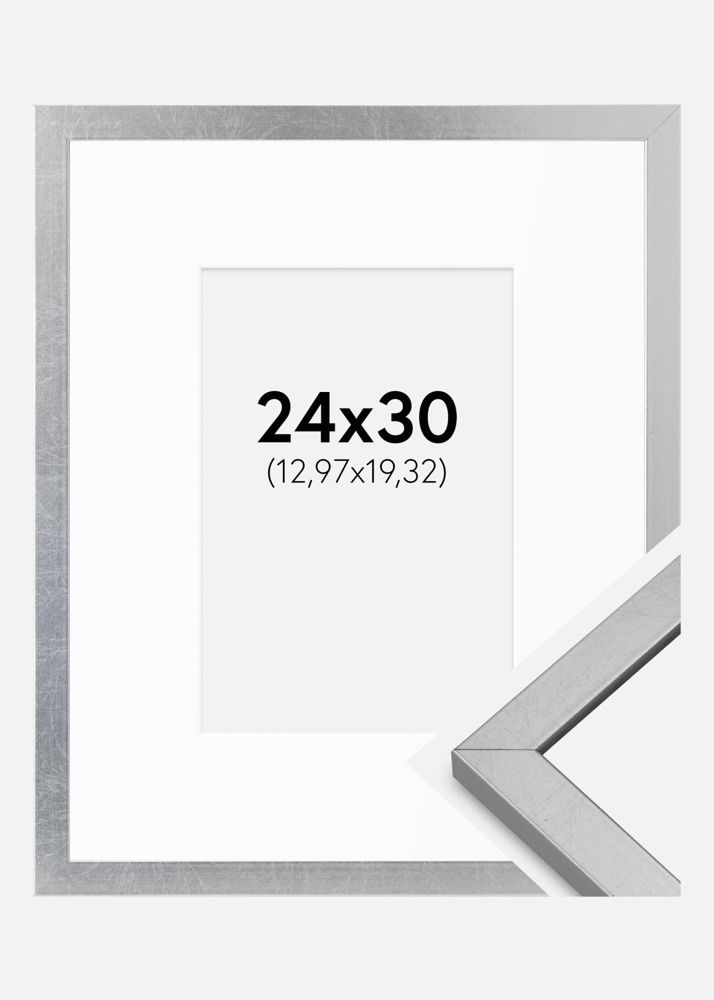 Rahmen Minerva Silber 24x30 cm - Passepartout Weiß 5,5x8 inches