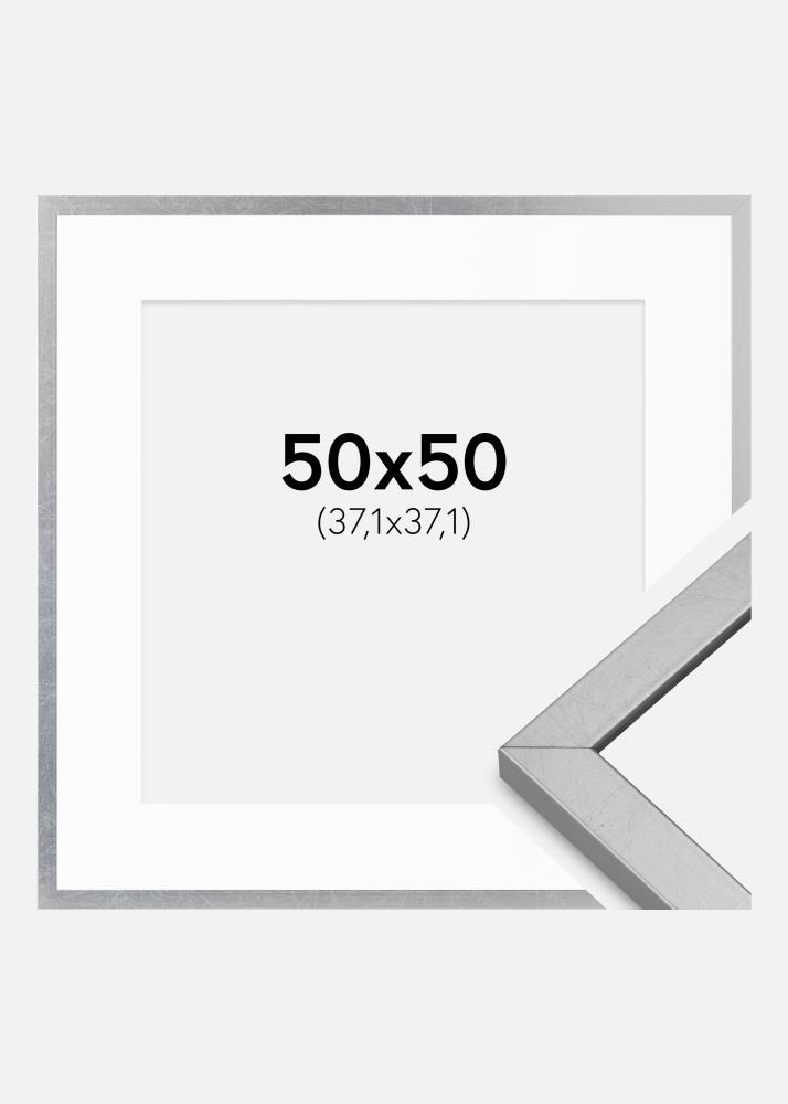 Rahmen Minerva Silber 50x50 cm - Passepartout Weiß 15x15 inches