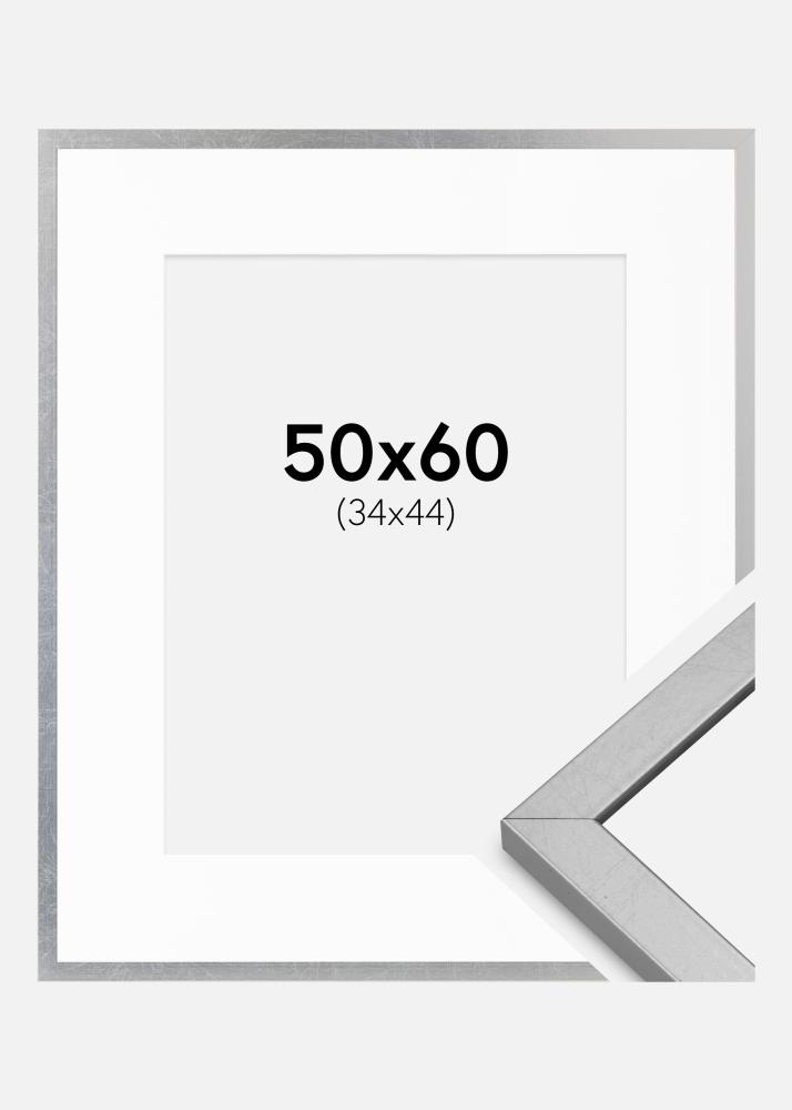 Rahmen Minerva Silber 50x60 cm - Passepartout Weiß 35x45 cm