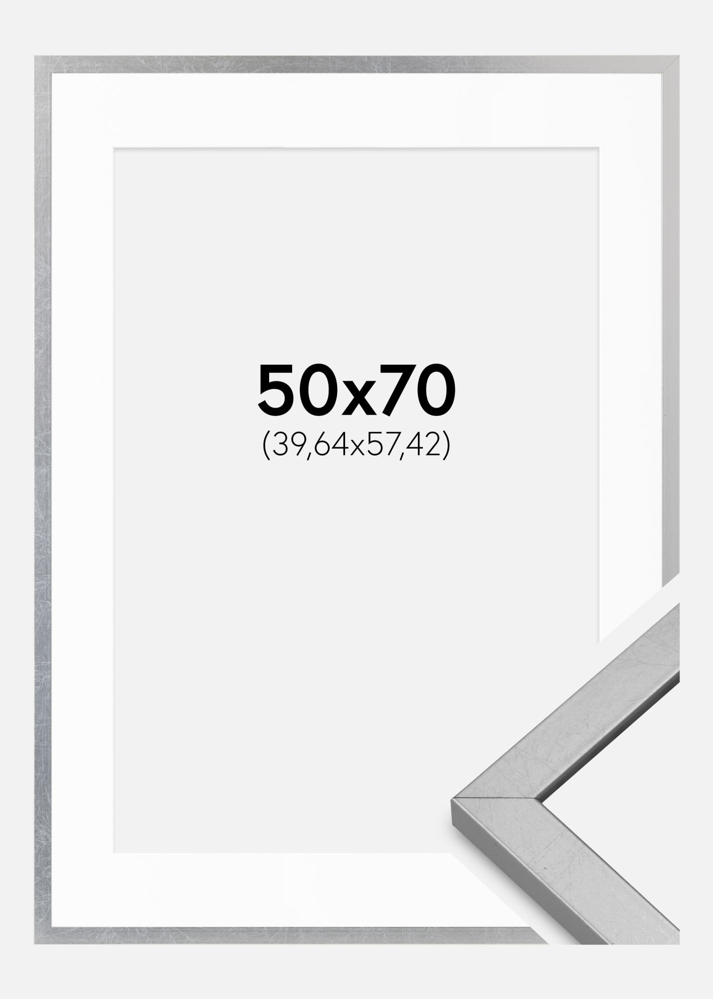 Rahmen Minerva Silber 50x70 cm - Passepartout Weiß 16x23 inches