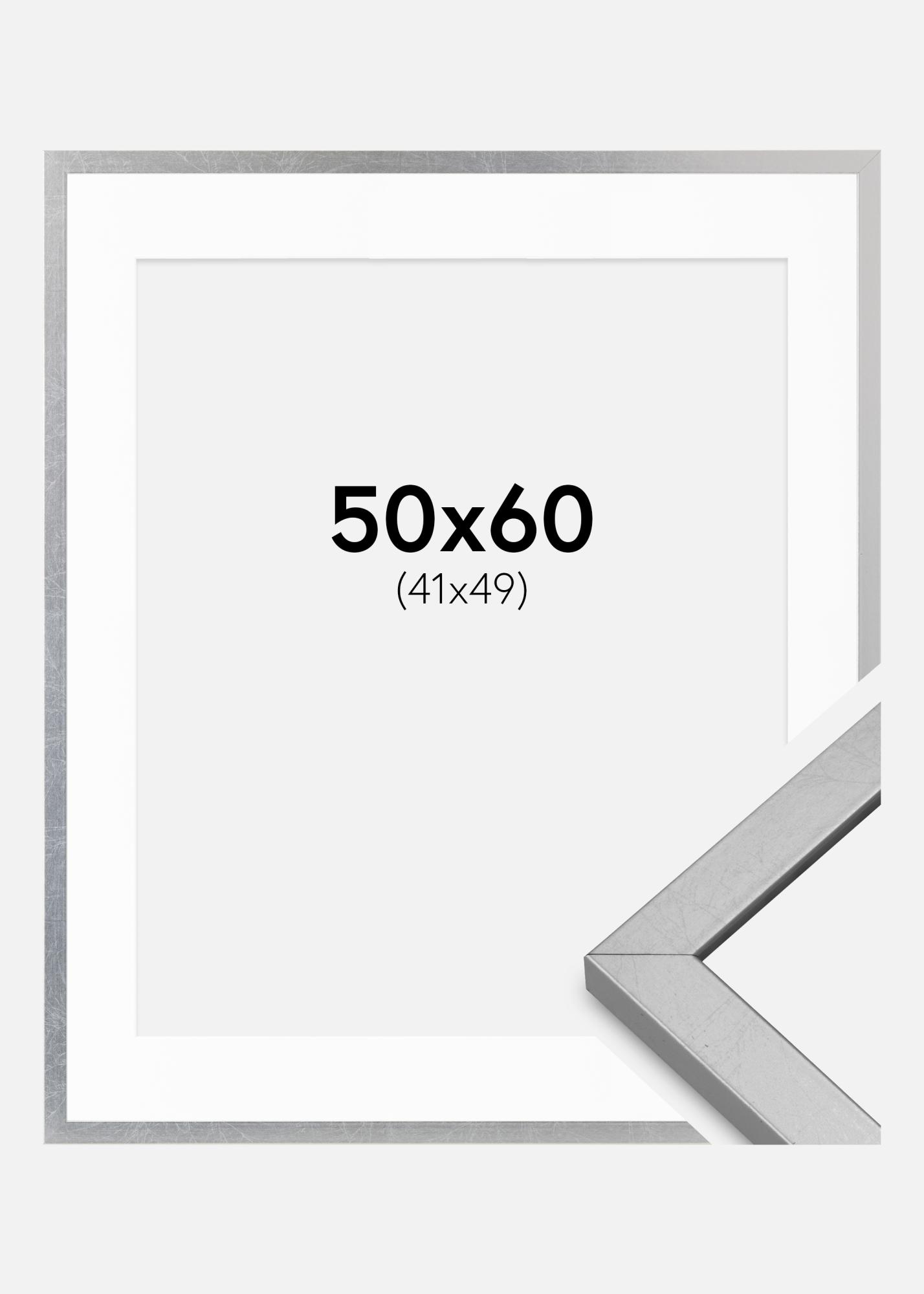 Rahmen Minerva Silber 50x60 cm - Passepartout Weiß 42x50 cm