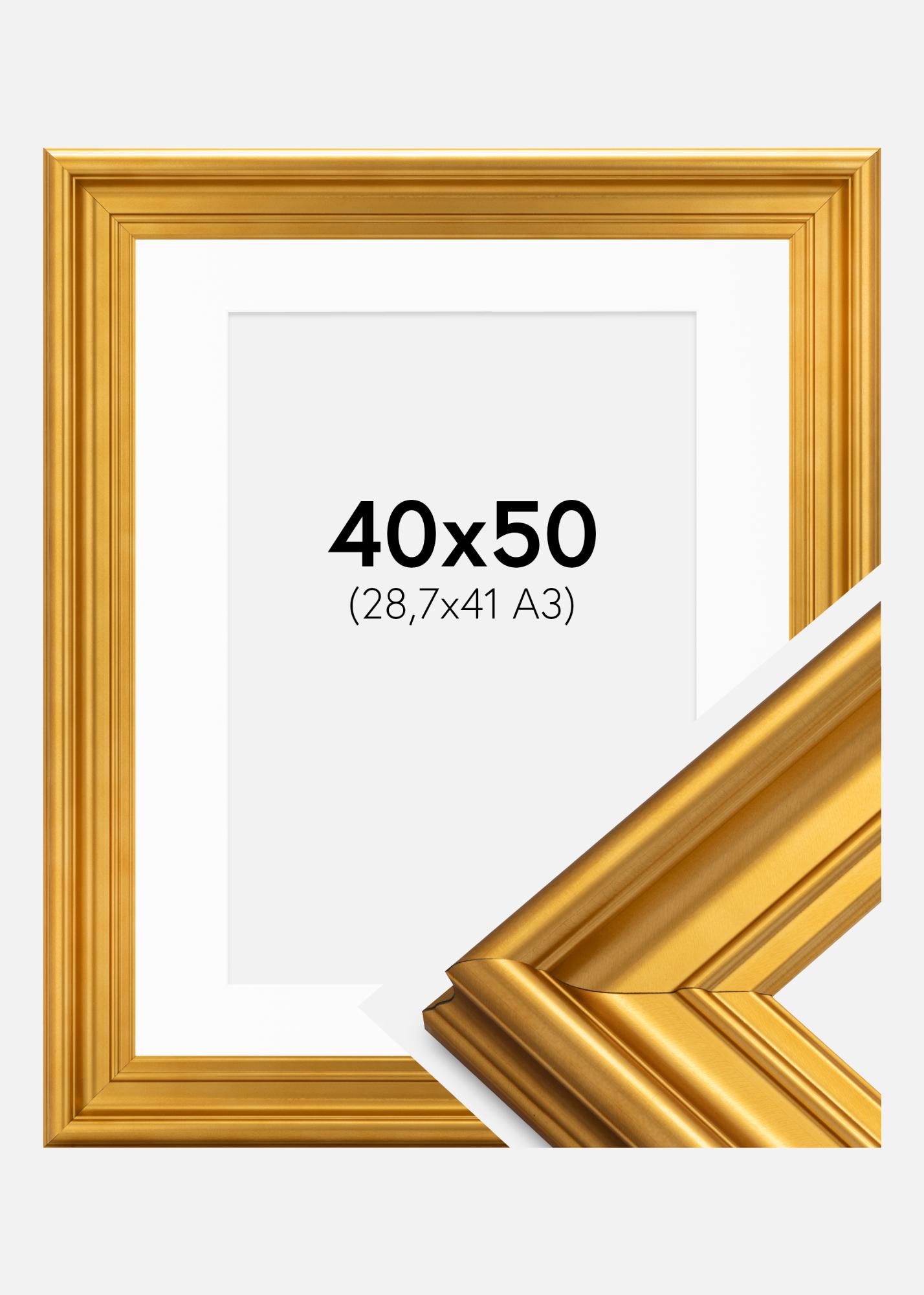 Rahmen Mora Premium Gold 40x50 cm - Passepartout Weiß 29,7x42 cm (A3)