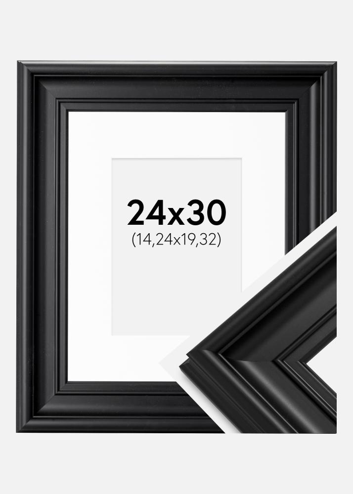 Rahmen Mora Premium Schwarz 24x30 cm - Passepartout Weiß 6x8 inches