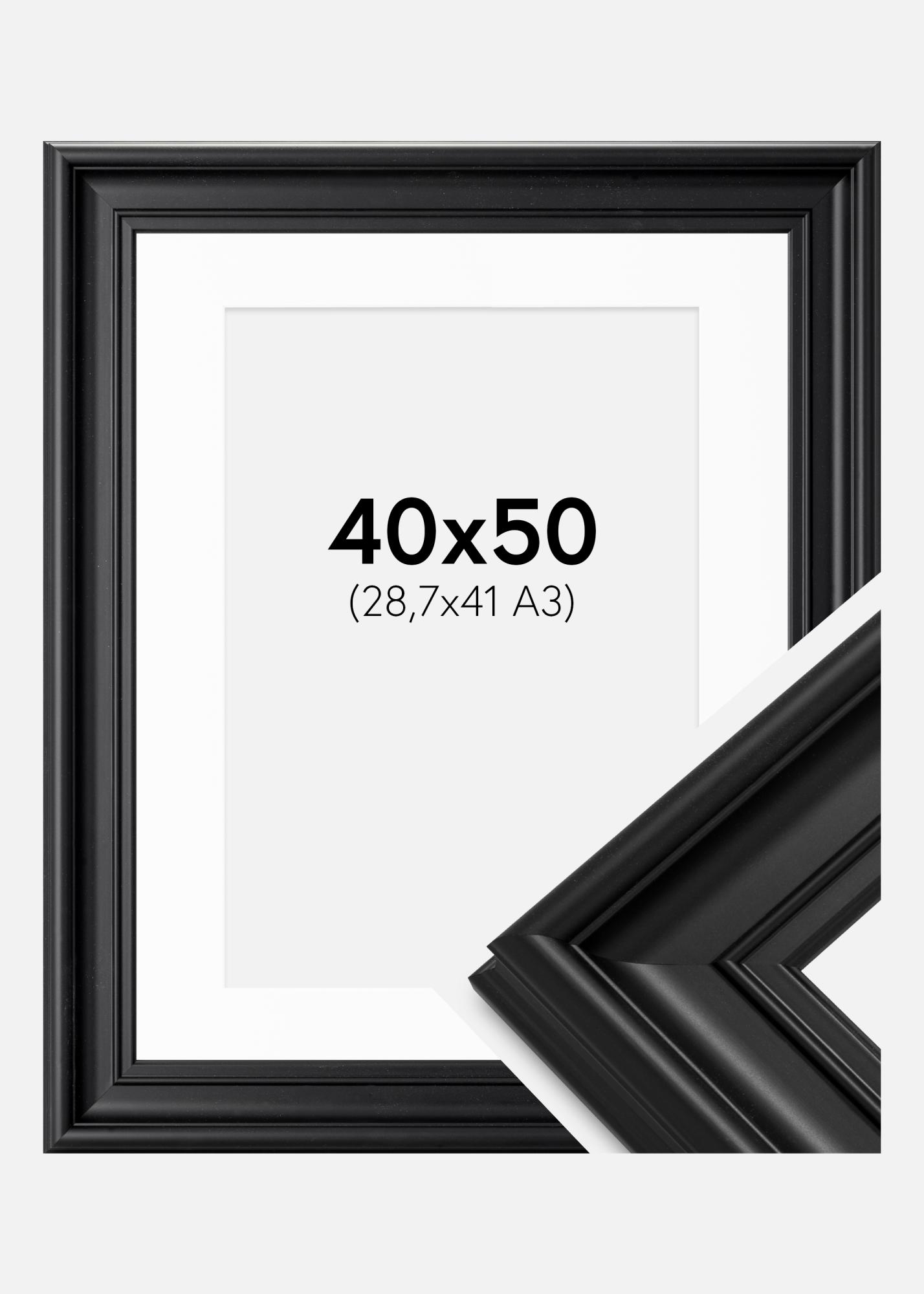 Rahmen Mora Premium Schwarz 40x50 cm - Passepartout Weiß 29,7x42 cm (A3)