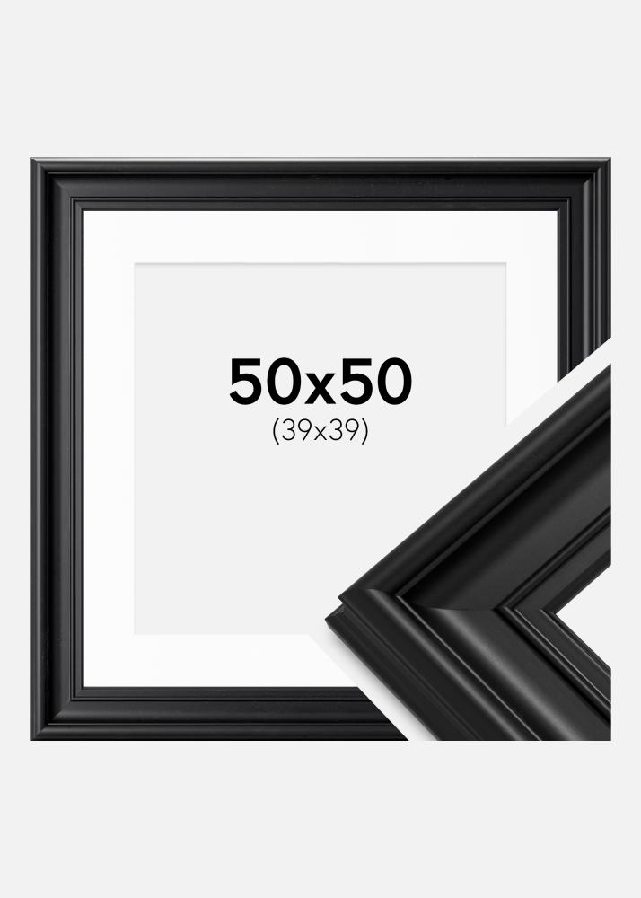 Rahmen Mora Premium Schwarz 50x50 cm - Passepartout Weiß 40x40 cm