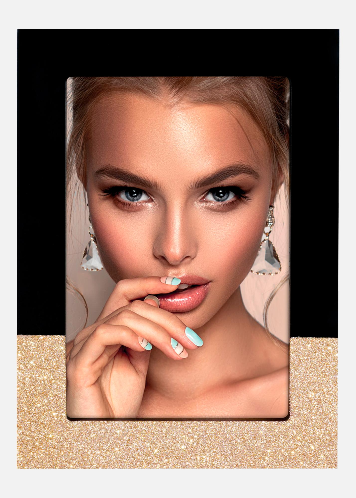 Rahmen Morgex Schwarz 10x15 cm ist eine perfekte Einrahmung für Ihre Lieblingsbilder. Mit seinem modernen und stilvollen Design kombiniert er elegant Schwarz und Gold, um einen anspruchsvollen Look zu schaffen. Die schwarze Oberfläche bietet einen schönen Kontrast, während das glitzernde Gold unten einen luxuriösen und auffälligen Effekt hinzufügt.