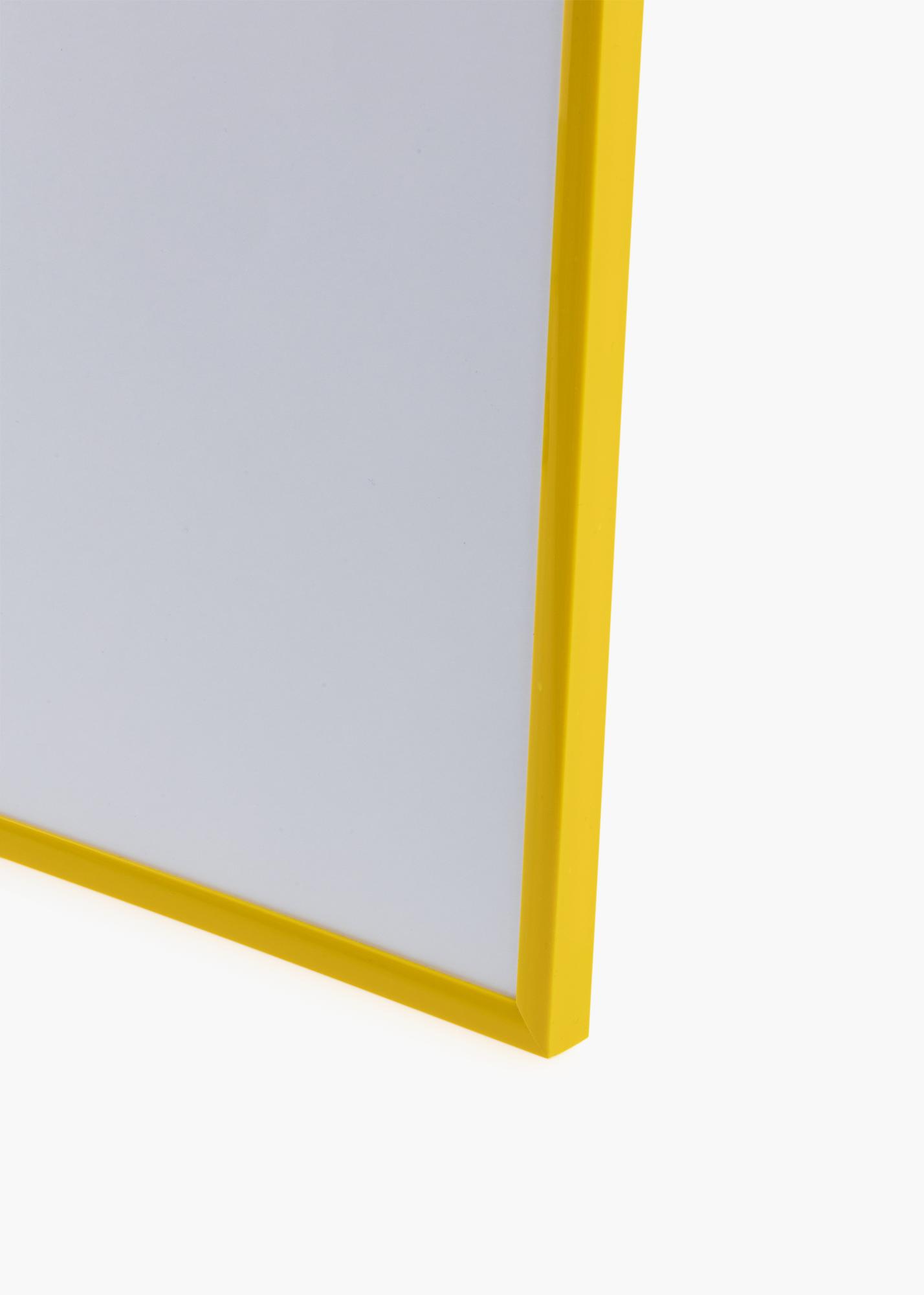 Der Bilderrahmen New Lifestyle Acrylglas Gelb ist ein schöner Bilderrahmen, besonders für farbenfrohe, farbstarke Bilder. Der gelbe Farbton dieses Bilderrahmens harmoniert gut mit blauen, grünen, roten Farbnuancen, ja eigentlich mit so gut wie allen Farben! Dieser Bilderrahmen setzt nicht nur deine Bilder gekonnt in Szene, sondern macht auch selbst ein trendiges Wohnaccessoire aus, das einen Hauch von Freude verbreiten oder für einen fröhlich wirkenden Farbakzent sorgen kann. Dieser Bilderrahmen besitzt eine schmale Bilderrahmenleiste von 9mm, die sich durch ein leicht gerundetes Profil auszeichnet. Auf der Rückseite des Rahmens befindet sich eine Halterung, um den Bilderrahmen entweder hochkant oder quer an der Wand aufzuhängen. Die Bilderrahmenrückwand wird von beweglichen Metallclips gehalten und kann einfach gelöst werden, um das Bild einzulegen.