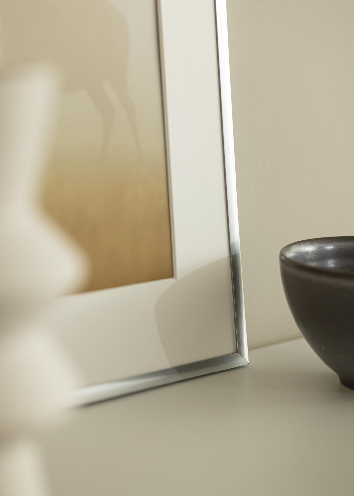 Verwandeln Sie Ihre Bilder in Kunstwerke mit unserem eleganten silberfarbenen Rahmen, komplett mit einem stilvollen weißen Passepartout. Dieser Rahmen ist perfekt, um Ihre 8x10 cm Bilder hervorzuheben und ihnen eine raffinierte Einrahmung zu geben. Mit einer matten Oberfläche und einer schmalen Breite von 9 mm bietet dieser Rahmen ein modernes und minimalistisches Gefühl, das zu den meisten Einrichtungsstilen passt.