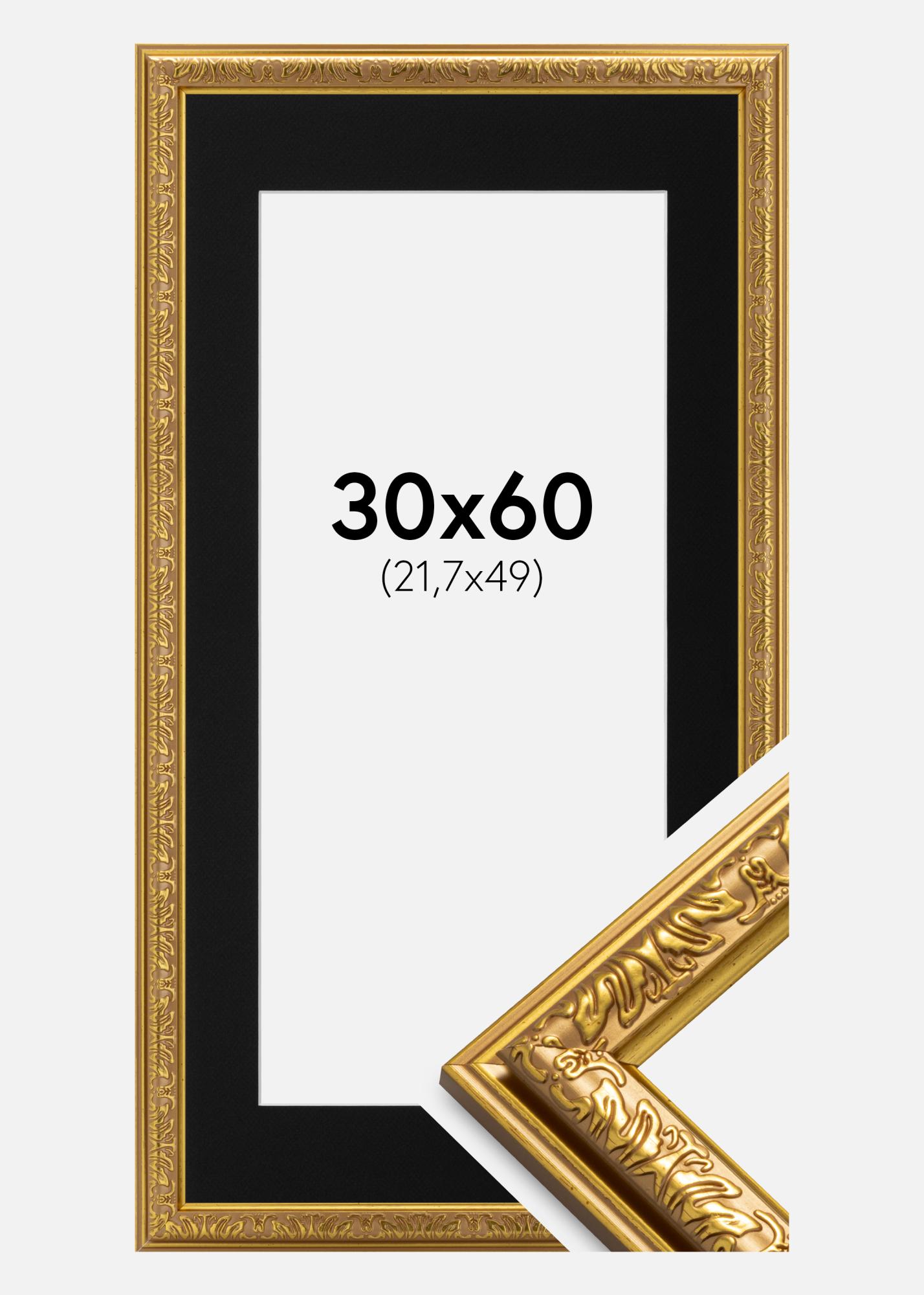 Rahmen Nostalgia Gold 30x60 cm - Passepartout Schwarz 22,7x50 cm