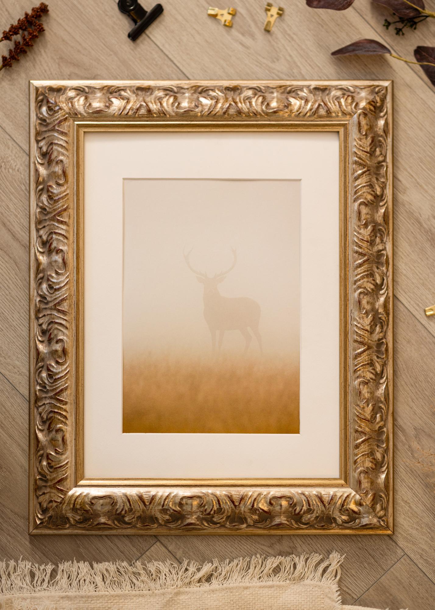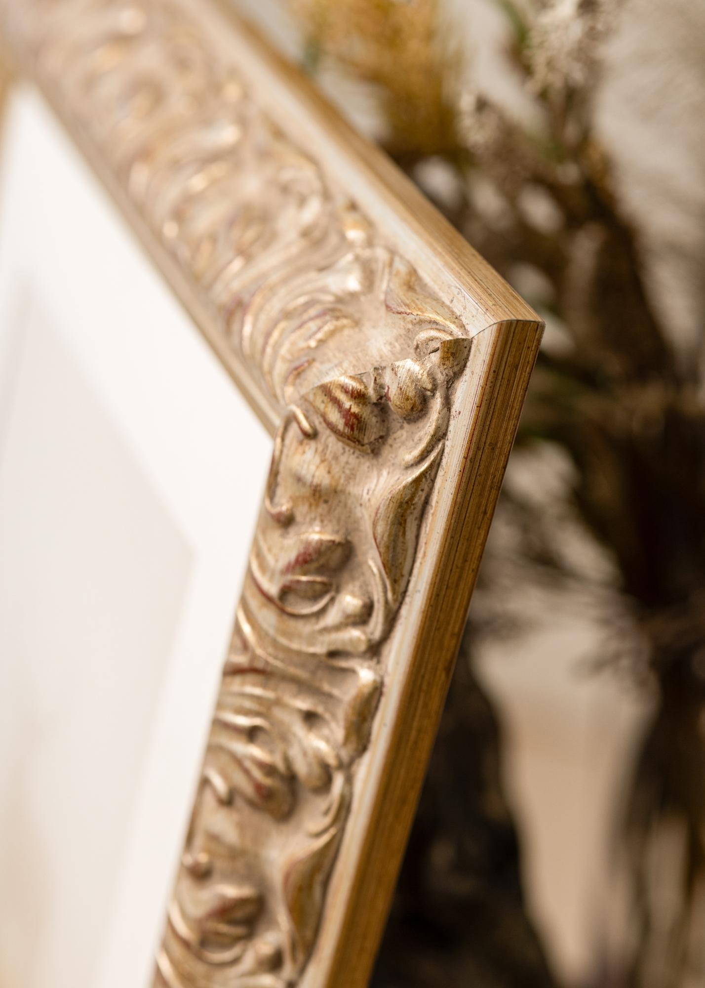 Dieser Bilderrahmen hat eine beeindruckende 64 mm breite Leiste und eine Tiefe von 38,5 mm, was eine robuste und stabile Rahmung gewährleistet. Gefertigt aus hochwertiger Kiefer, garantiert er sowohl Haltbarkeit als auch Stil. Das Design des Rahmens ist sorgfältig ausgearbeitet, um zu verschiedenen Kunstwerken zu passen, von traditionellen Gemälden bis hin zu modernen Fotografien.