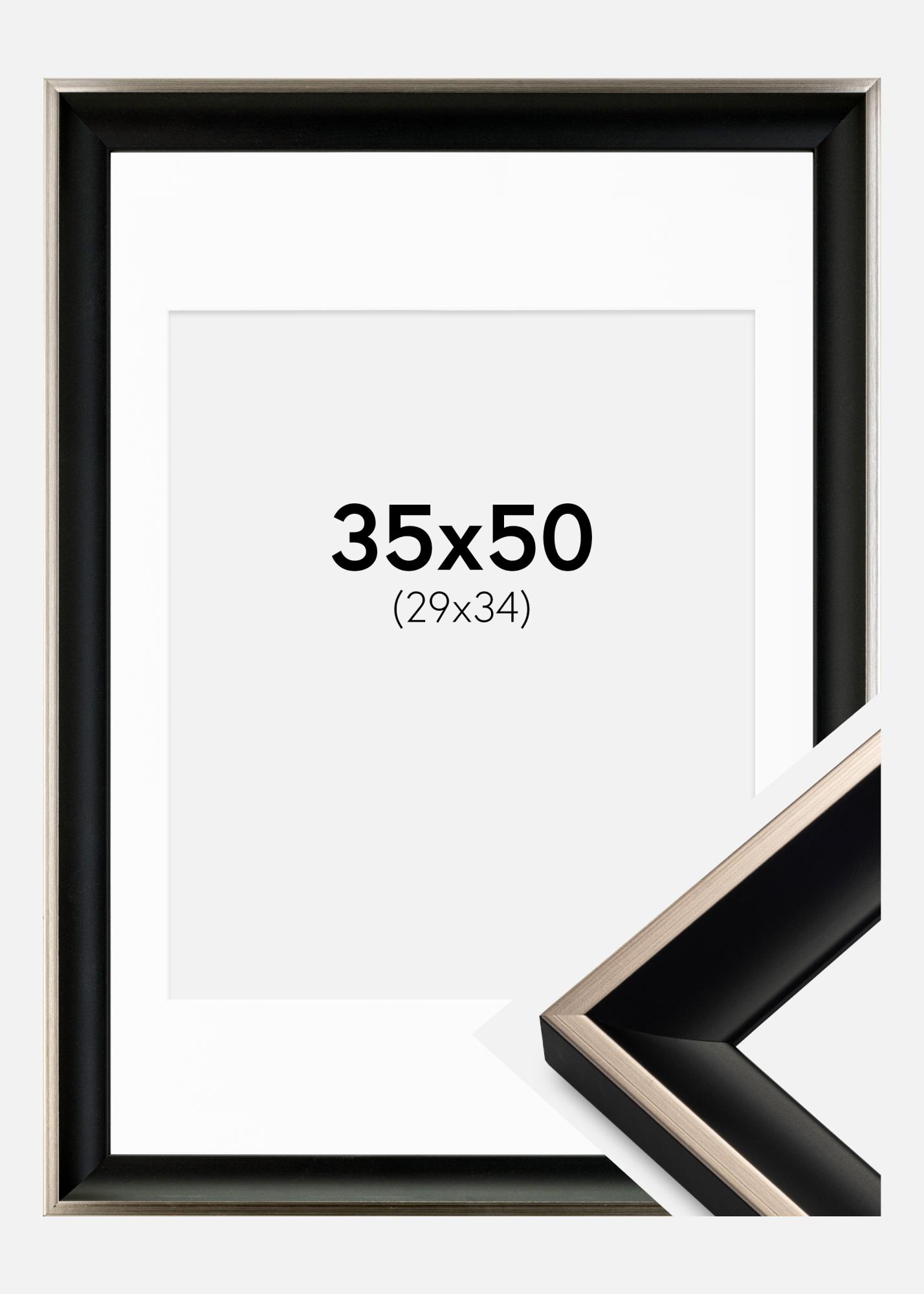Rahmen Öjaren Schwarz-Silber 35x50 cm - Passepartout Weiß 30x35 cm