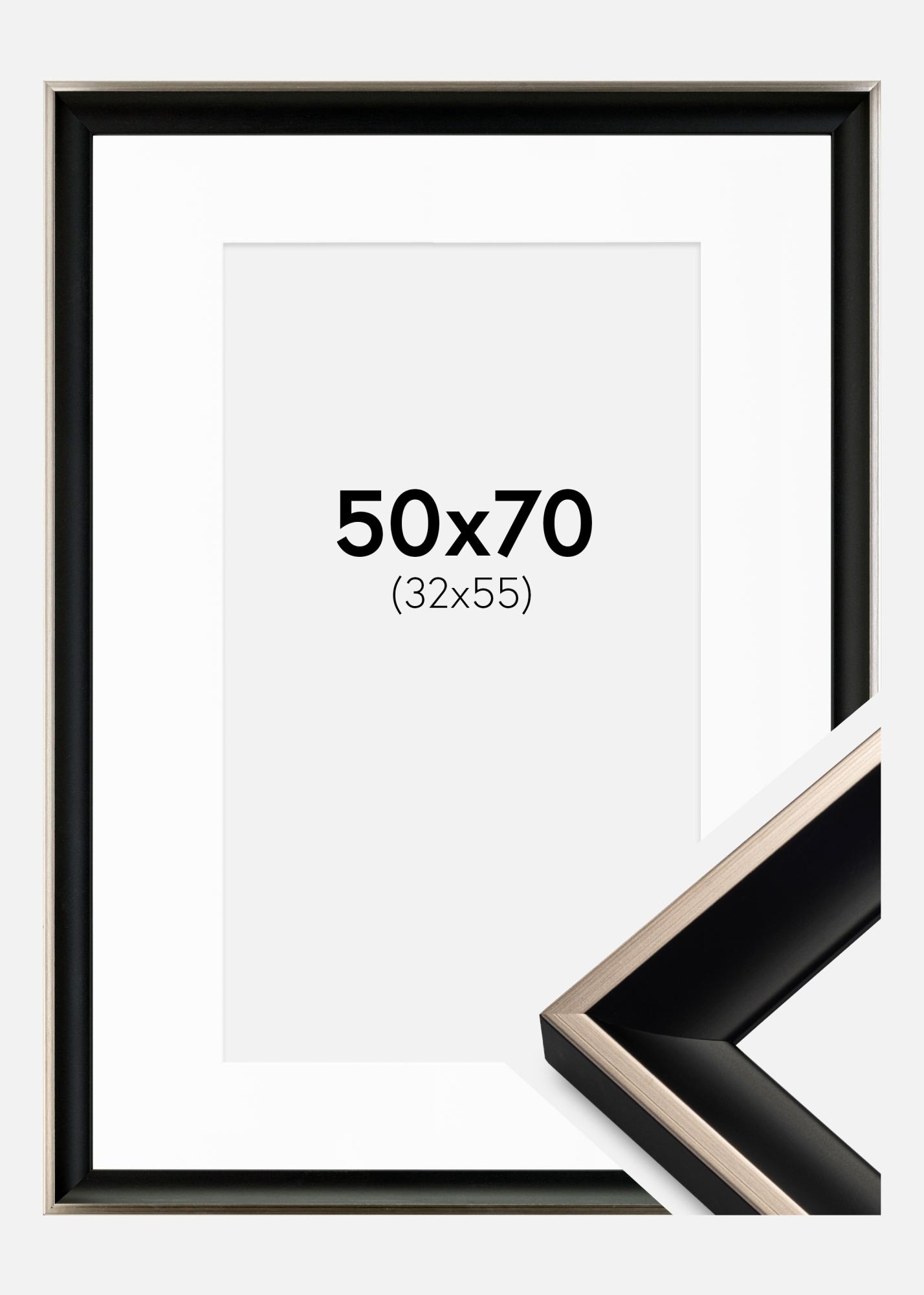 Rahmen Öjaren Schwarz-Silber 50x70 cm - Passepartout Weiß 33x56 cm