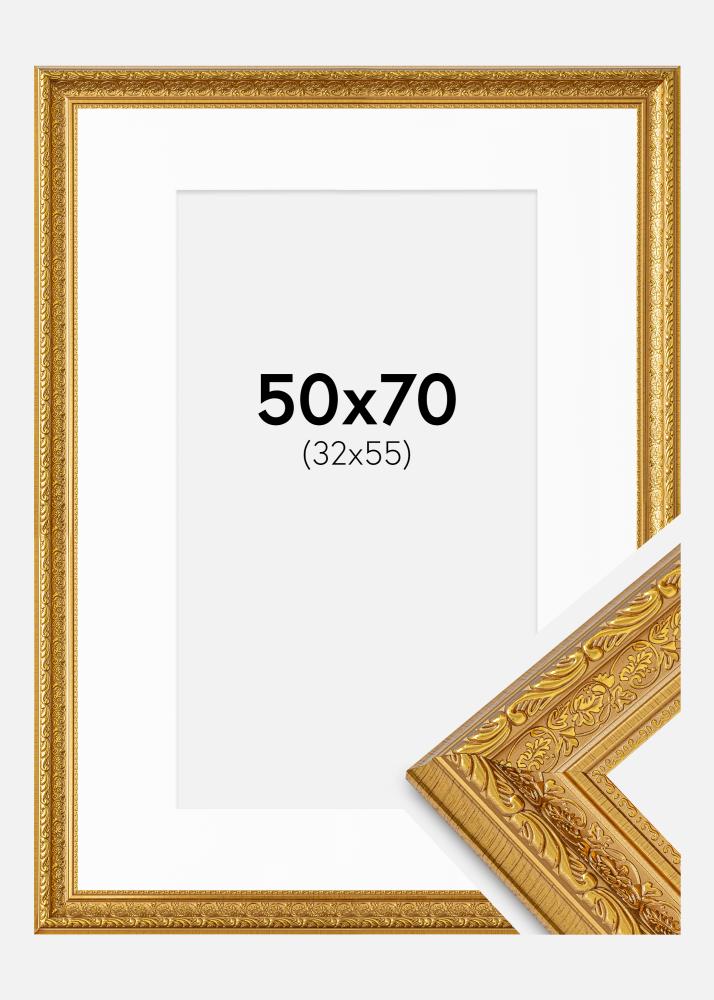 Rahmen Ornate Gold 50x70 cm - Passepartout Weiß 33x56 cm