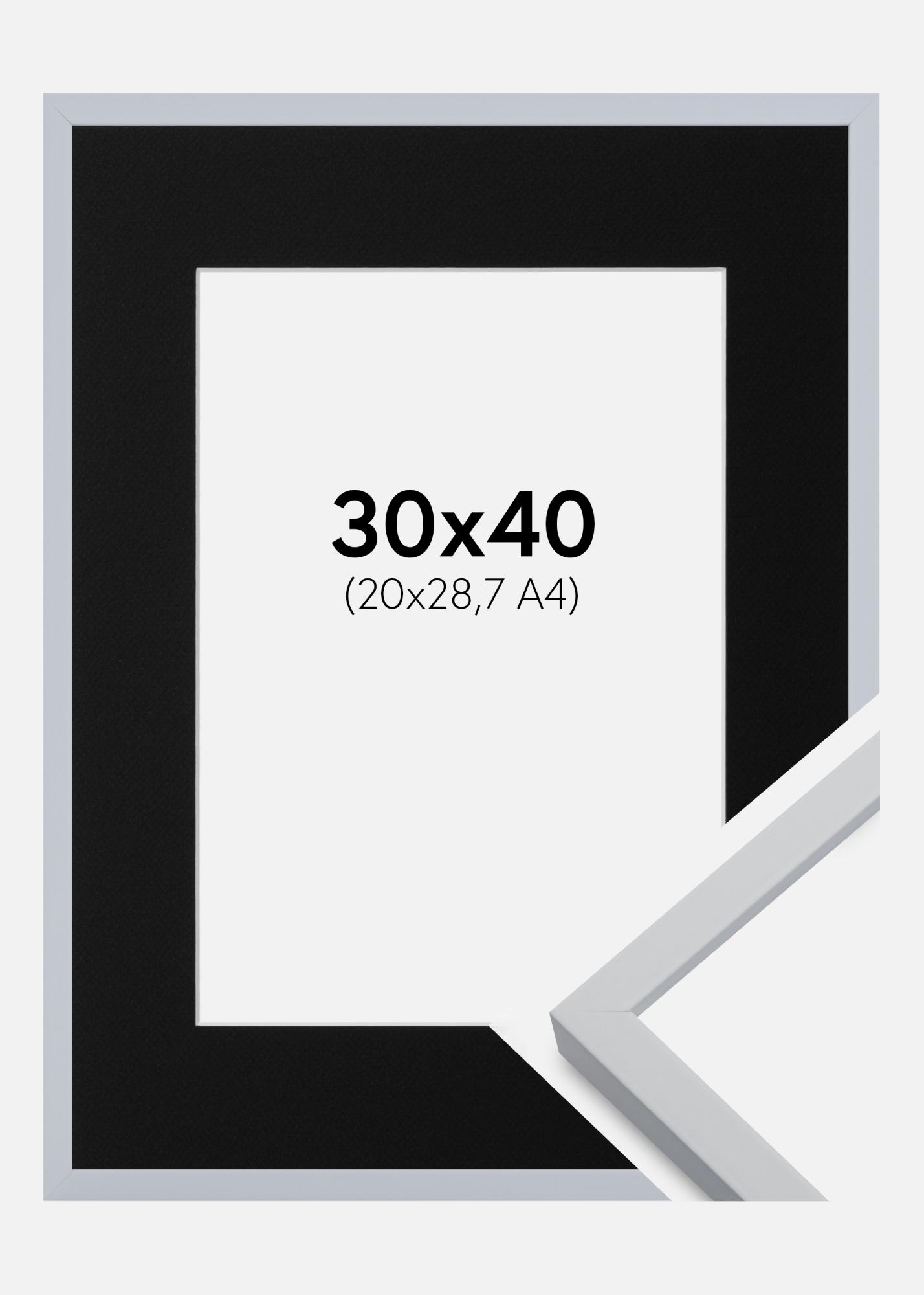 Rahmen Oslo Weiß 30x40 cm - Passepartout Schwarz 21x29,7 cm (A4)