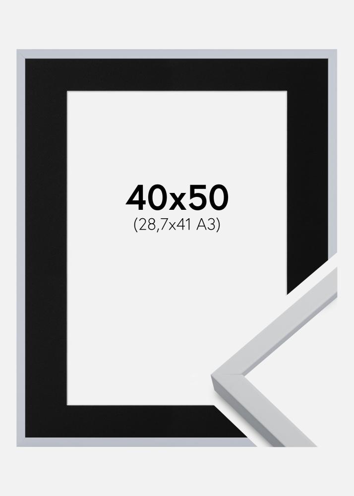 Rahmen Oslo Weiß 40x50 cm - Passepartout Schwarz 29,7x42 cm (A3)