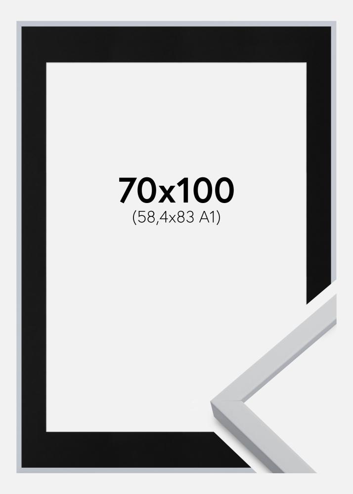 Rahmen Oslo Weiß 70x100 cm - Passepartout Schwarz 59,4x84 cm (A1)