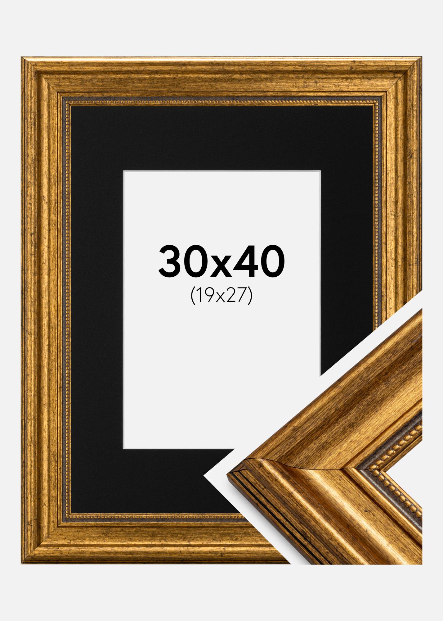Rahmen Rokoko Gold 30x40 cm - Passepartout Schwarz 20x28 cm