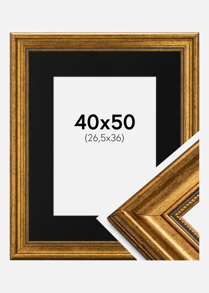 Rahmen Rokoko Gold 40x50 cm - Passepartout Schwarz 27,5x37 cm