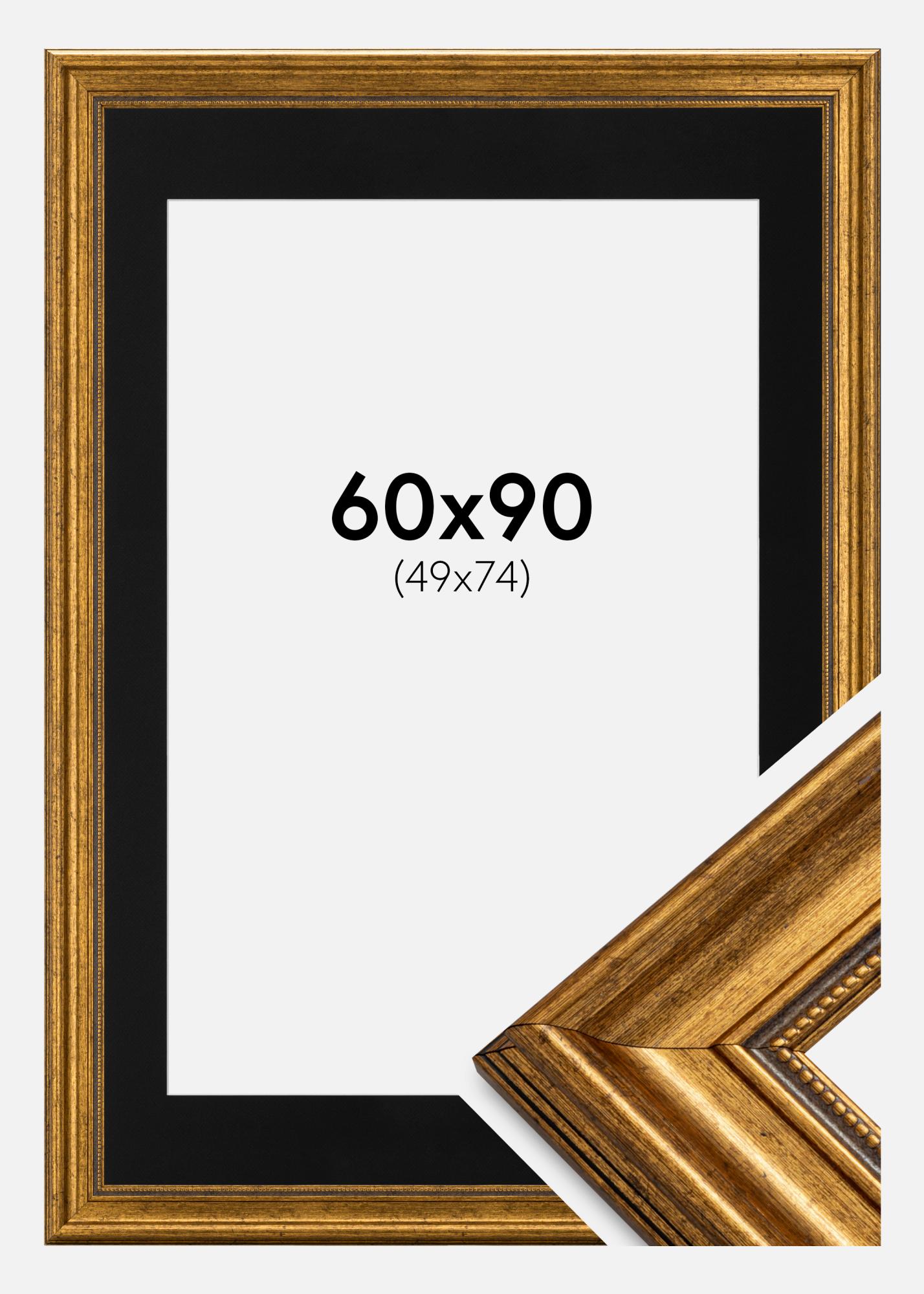 Rahmen Rokoko Gold 60x90 cm - Passepartout Schwarz 50x75 cm