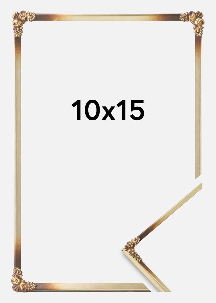 Rosen Metall Gold ist ein klassischer Rahmen, der allen Ihren Motiven einen raffinierten Rahmen verleiht. Jede Ecke ist mit kleinen Rosen dekoriert, die leicht "verbrannt" sind, um das richtige Finish zu erzielen. Der Rahmen ist aus goldfarbenem Metall gefertigt, was ihn robust macht und gleichzeitig das exklusive Gefühl, das der Rahmen vermittelt, verstärkt.