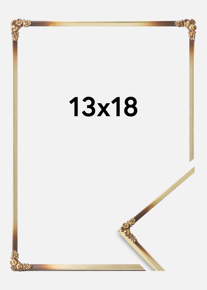 Rosen Metall Gold ist ein klassischer Rahmen, der all Ihren Motiven einen raffinierten Rahmen verleiht. Jede Ecke ist mit kleinen Rosen verziert, die leicht "verbrannt" sind, um das richtige Finish zu erzielen. Der Rahmen ist aus goldfarbenem Metall gefertigt, was ihn robust macht und gleichzeitig das exklusive Gefühl, das der Rahmen vermittelt, verstärkt.