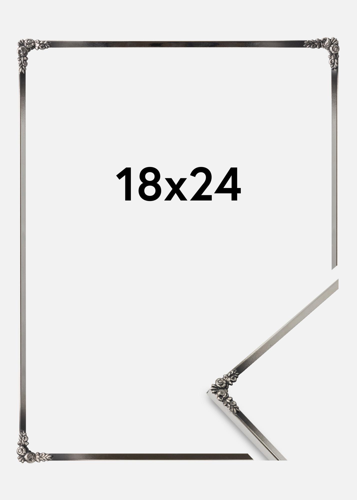 Rosen Metall Silber ist ein Rahmen im klassischen Stil, bei dem jede Ecke mit kleinen eleganten Rosen dekoriert ist. Der Rahmen ist aus silberfarbenem Metall gefertigt und hat ein leicht „verbranntes“ Finish, das dazu beiträgt, ein besonders stilvolles Gefühl zu schaffen. Auf der Rückseite befinden sich Wandbefestigungen und ein Rückenstütze, was bedeutet, dass der Rahmen sowohl an der Wand angebracht als auch als Dekoration auf einem Möbelstück platziert werden kann.