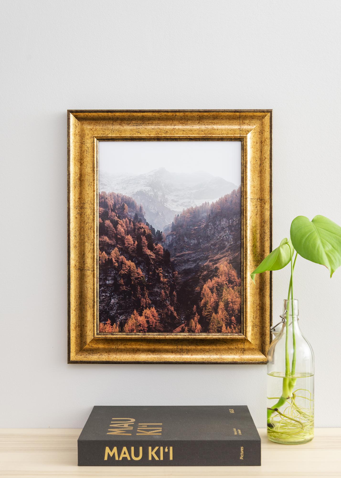 Die Leistenbreite des Bilderrahmens beträgt 64 mm und das klassisch, antik anmutende gekehlte Profil setzt dein Bildmotiv gekonnt in Szene. Für eine noch schönere, wirkungsvolle Bildeinrahmung empfiehlt es sich, den Bilderrahmen mit einem stilvollen Passepartout zu komplettieren.