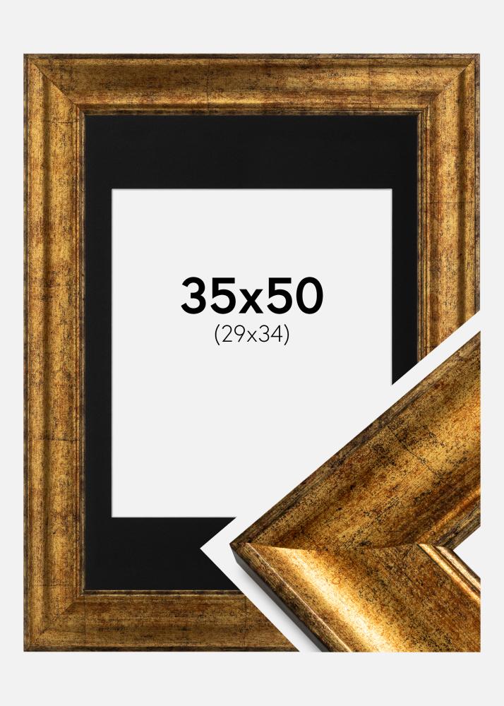 Rahmen Saltsjöbaden Gold 35x50 cm - Passepartout Schwarz 30x35 cm
