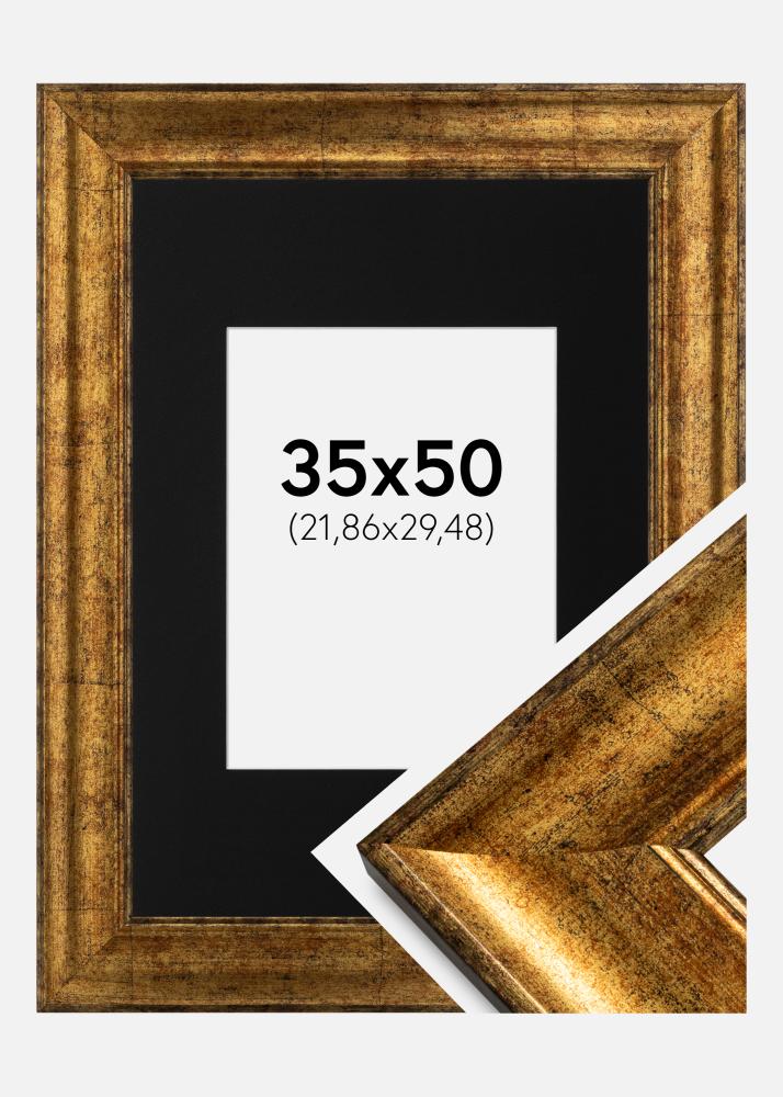 Rahmen Saltsjöbaden Gold 35x50 cm - Passepartout Schwarz 9x12 inches