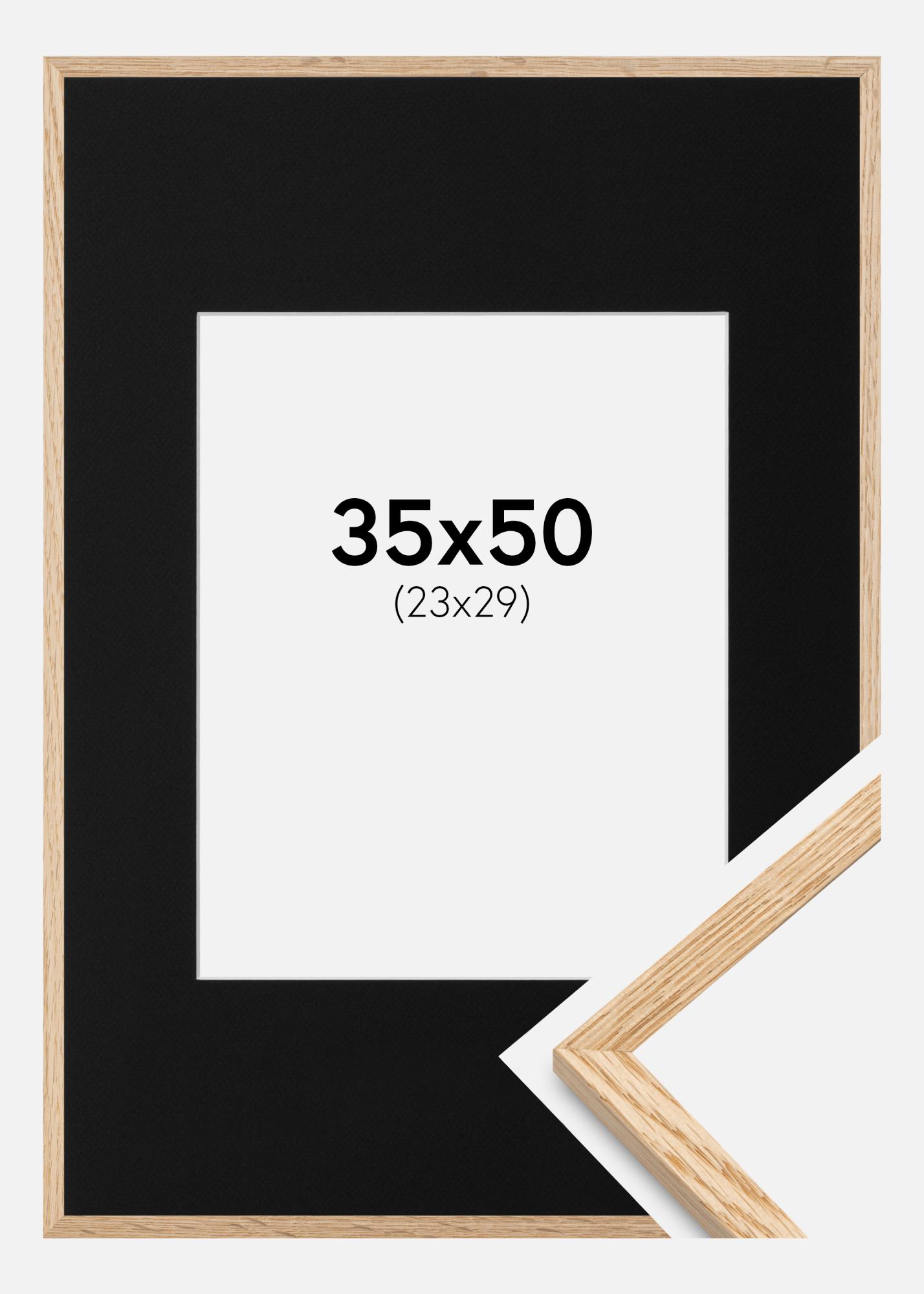 Rahmen Schmal Eiche 35x50 cm - Passepartout Schwarz 24x30 cm