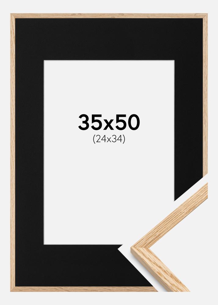 Rahmen Schmal Eiche 35x50 cm - Passepartout Schwarz 25x35 cm
