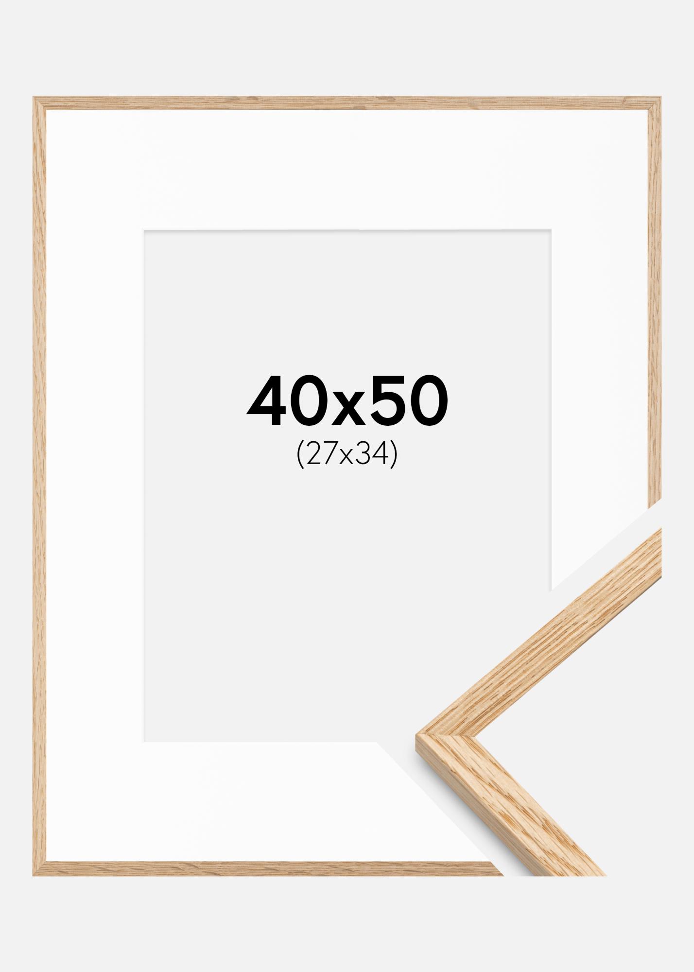 Rahmen Schmal Eiche 40x50 cm - Passepartout Weiß 28x35 cm