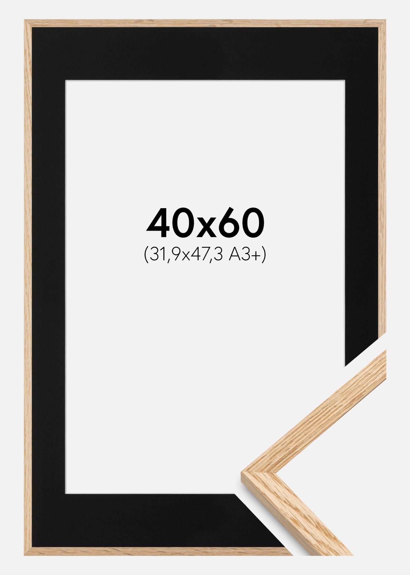 Rahmen Schmal Eiche 40x60 cm - Passepartout Schwarz 32,9x48,3 cm (A3+)