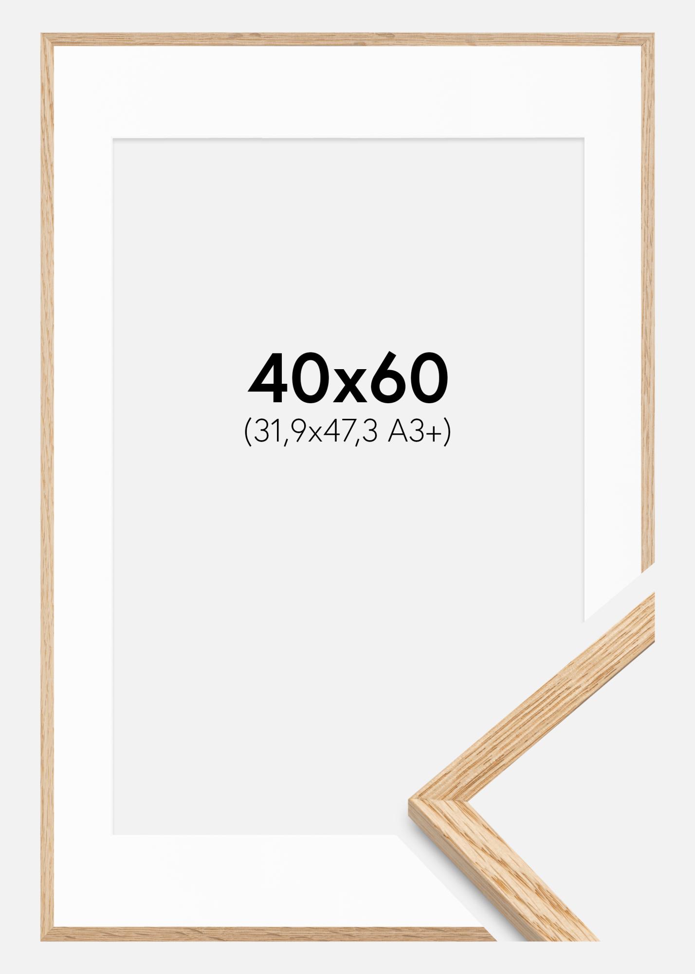 Rahmen Schmal Eiche 40x60 cm - Passepartout Weiß 32,9x48,3 cm (A3+)