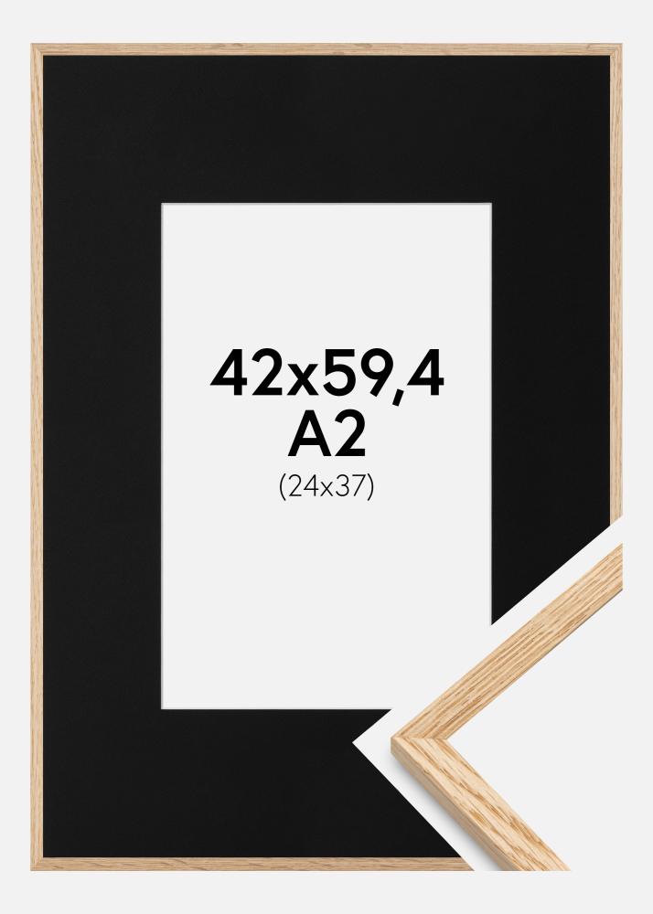 Rahmen Schmal Eiche 42x59,4 cm (A2) - Passepartout Schwarz 25x38 cm