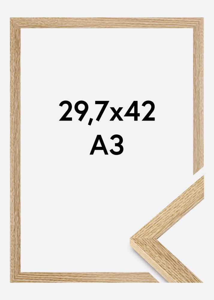 Dieser Bilderrahmen in Eiche-Optik zeichnet sich durch sein klassisches Vierkant-Profil, die Rahmenleiste mit einer Breite und Tiefe von 18 mm sowie durch die Oberfläche mit ansprechender Holzstruktur aus. Der natürliche Charakter dieses schönen Holz-Bilderrahmens passt wunderbar zu Naturmotiven oder zu modernen Bildern, die zum Design des Bilderrahmens in spannendem Kontrast stehen und so die Bildeinrahmung zu einem attraktiven Blickfang machen. Der passende Rahmen für Bilder im DIN A3-Format verleiht Ihrem Bild eine ästhetische Präsentation und eine imposante Präsenz in jedem Raum.