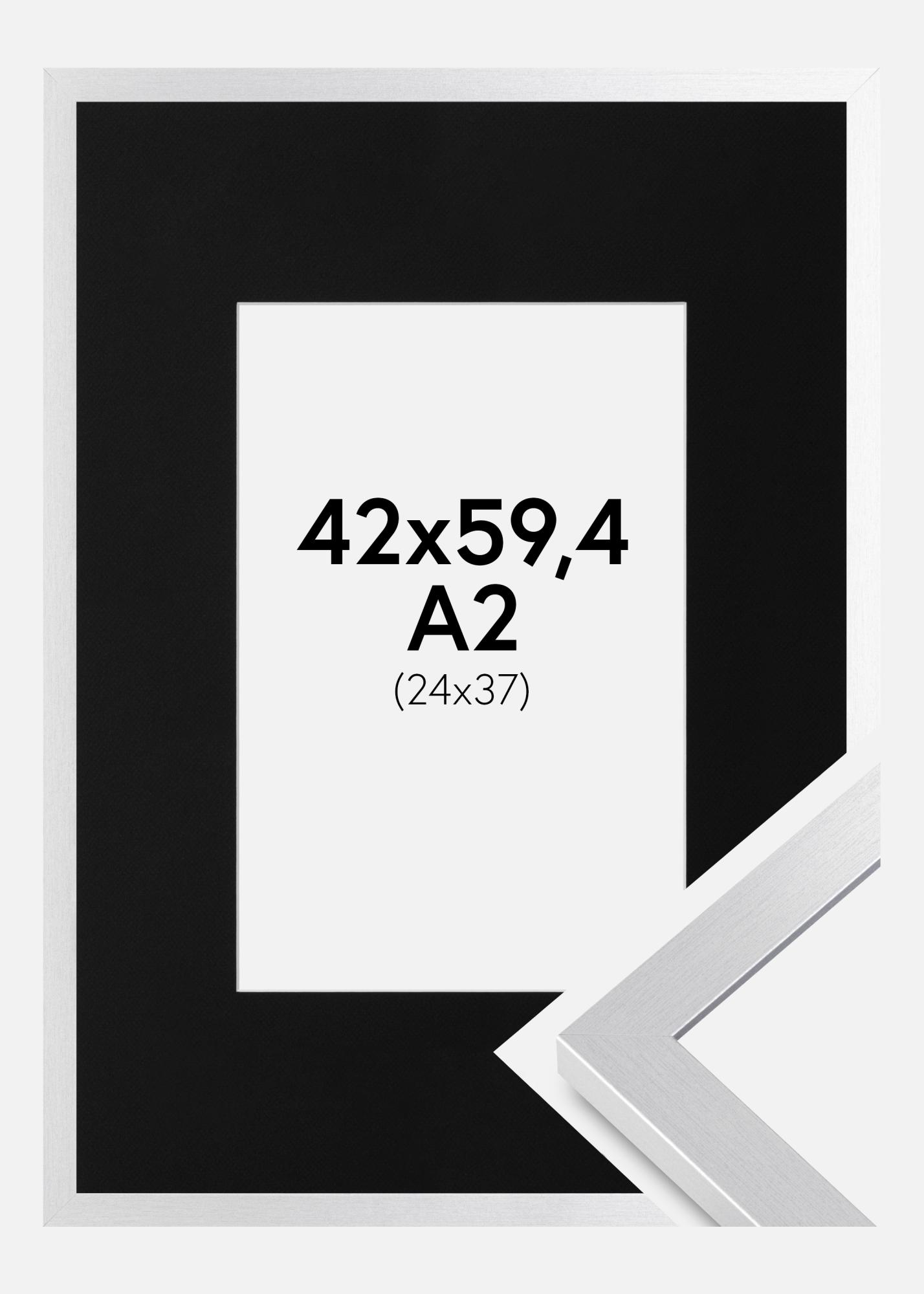 Rahmen Selection Silber 42x59,4 cm (A2) - Passepartout Schwarz 25x38 cm