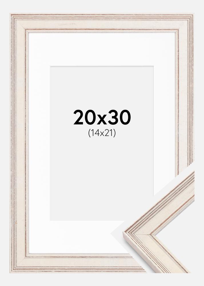 Rahmen Shabby Chic Weiß 20X30 cm - Passepartout Weiß 15x22 cm