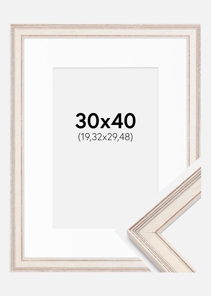Rahmen Shabby Chic Weiß 30x40 cm - Passepartout Weiß 8x12 inches