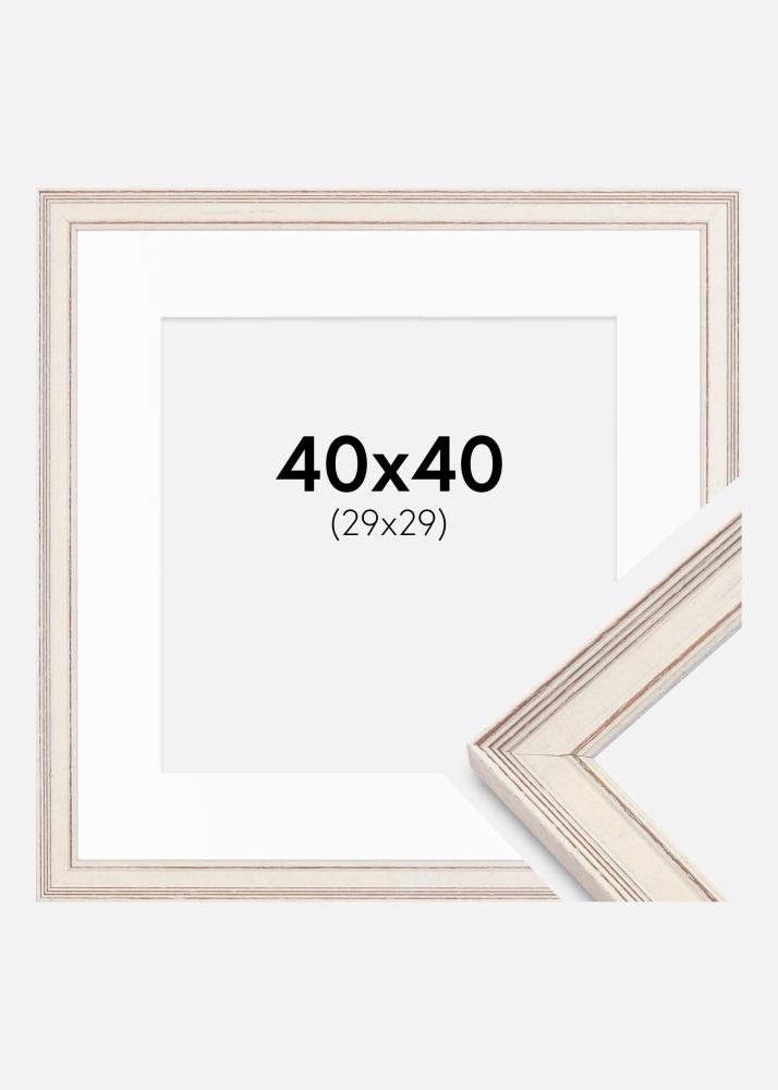 Rahmen Shabby Chic Weiß 40x40 cm - Passepartout Weiß 30x30 cm