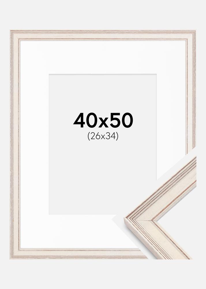 Rahmen Shabby Chic Weiß 40x50 cm - Passepartout Weiß 27x35 cm