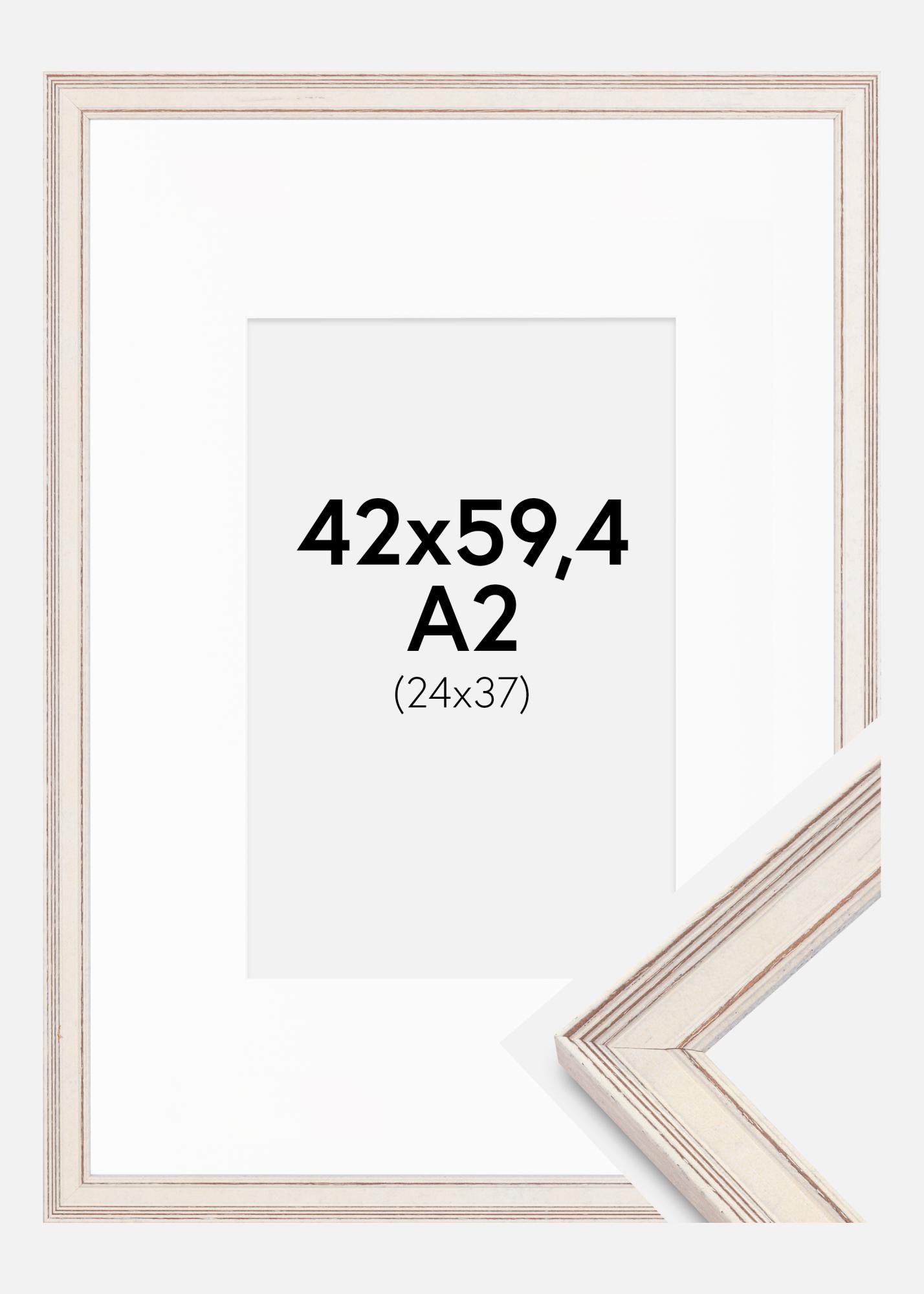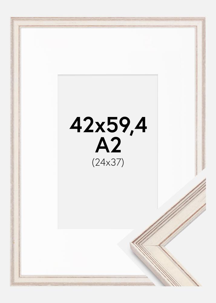 Rahmen Shabby Chic Weiß 42x59,4 cm (A2) - Passepartout Weiß 25x38 cm
