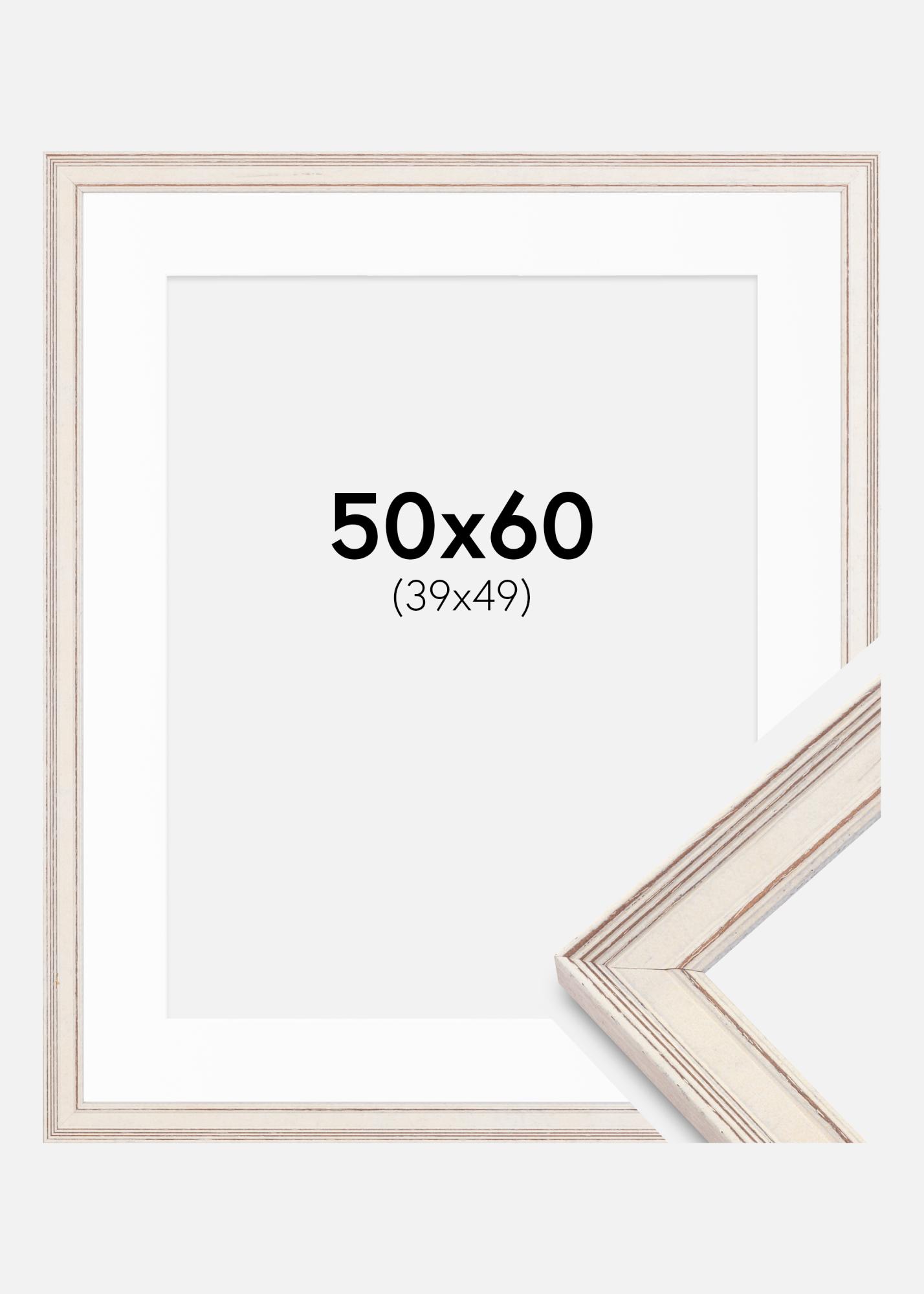 Rahmen Shabby Chic Weiß 50x60 cm - Passepartout Weiß 40x50 cm