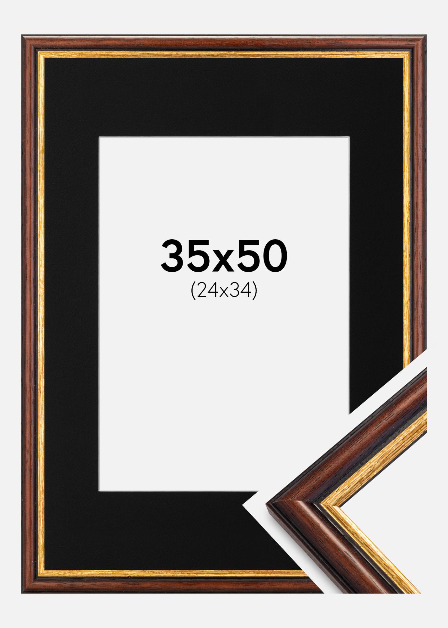 Rahmen Siljan Braun 35x50 cm - Passepartout Schwarz 25x35 cm