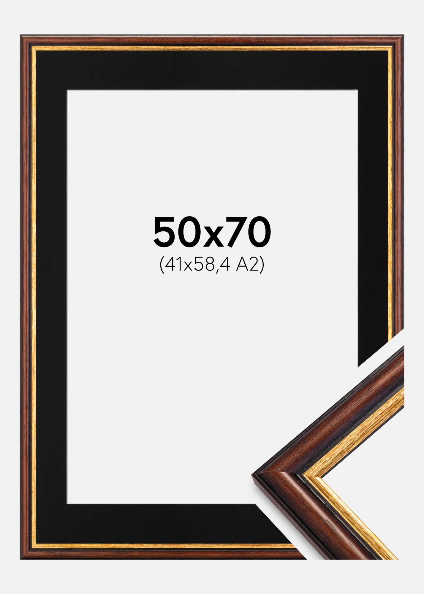 Rahmen Siljan Braun 50x70 cm - Passepartout Schwarz 42x59,4 cm (A2)