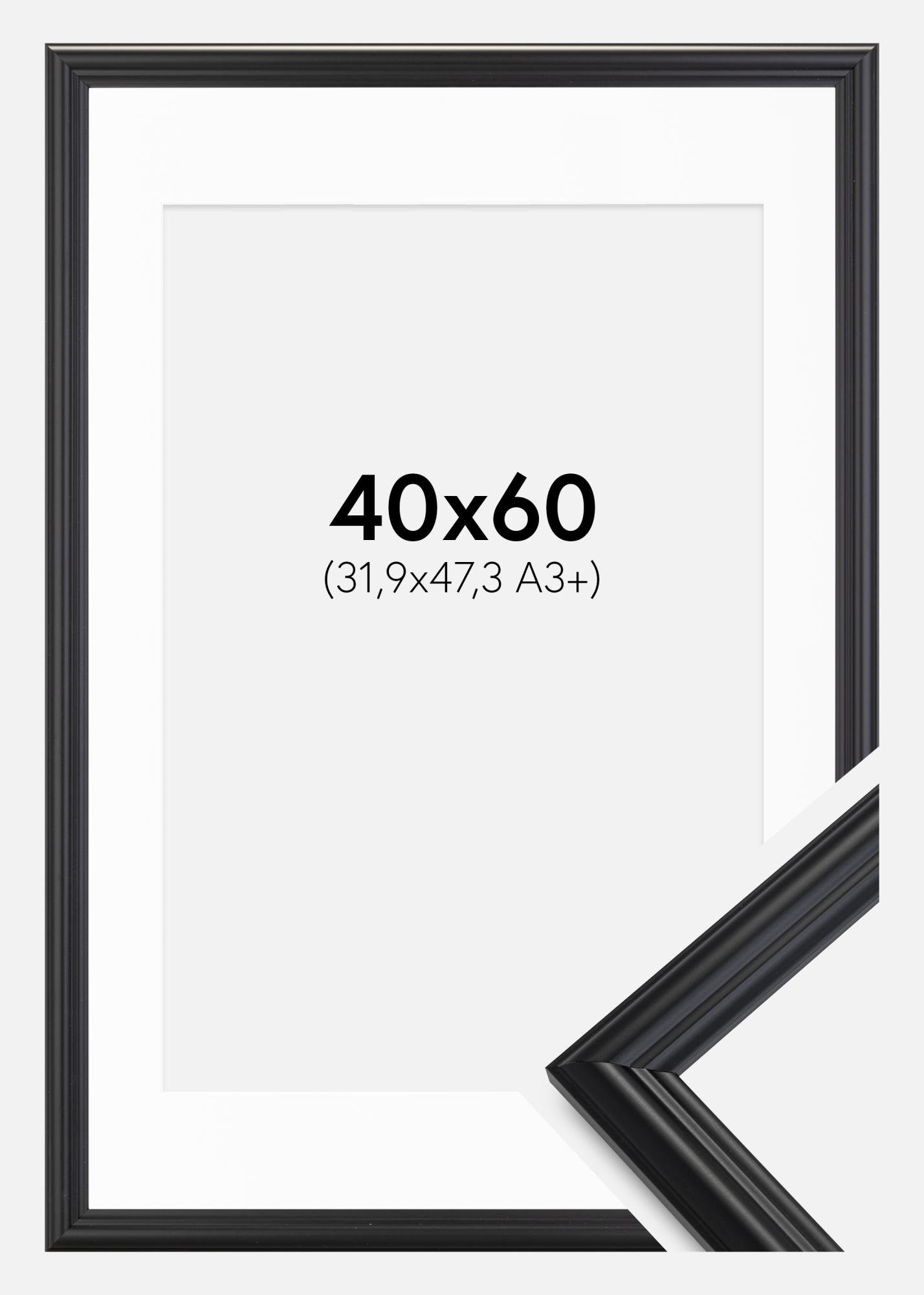 Rahmen Siljan Schwarz 40x60 cm - Passepartout Weiß 32,9x48,3 cm (A3+)