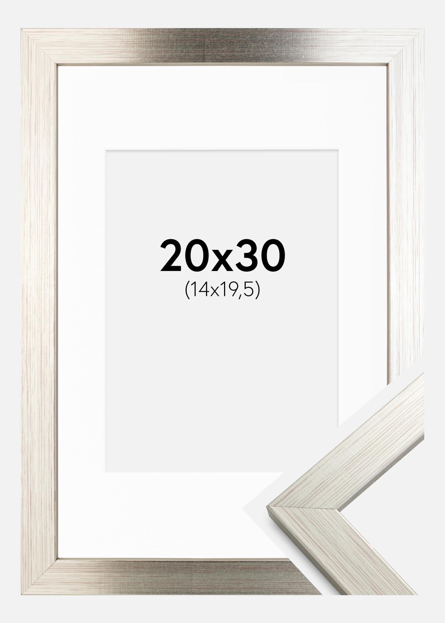 Rahmen Silver Wood 20x30 cm - Passepartout Weiß 15x21 cm (A5)