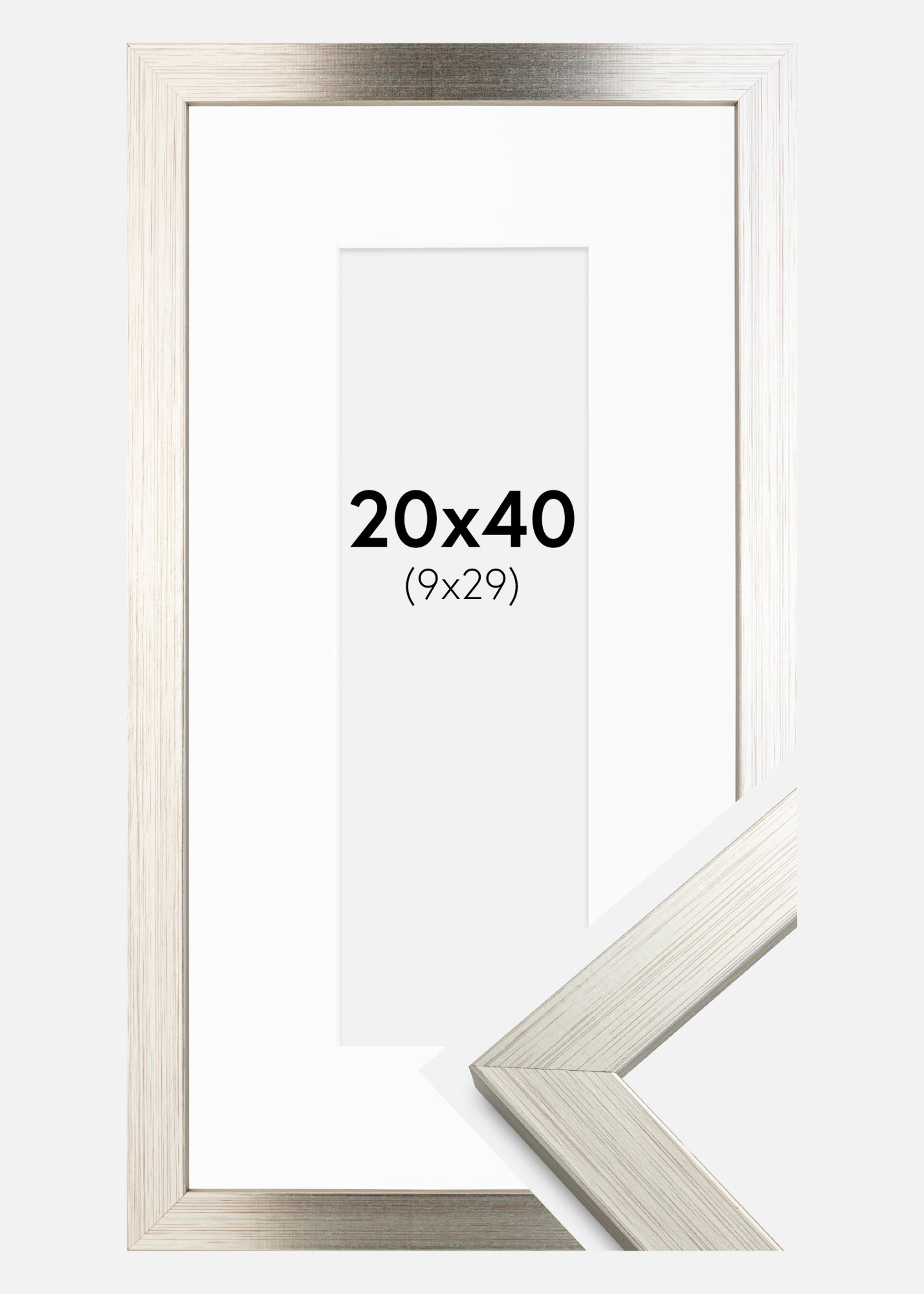 Rahmen Silver Wood 20x40 cm - Passepartout Weiß 10x30 cm