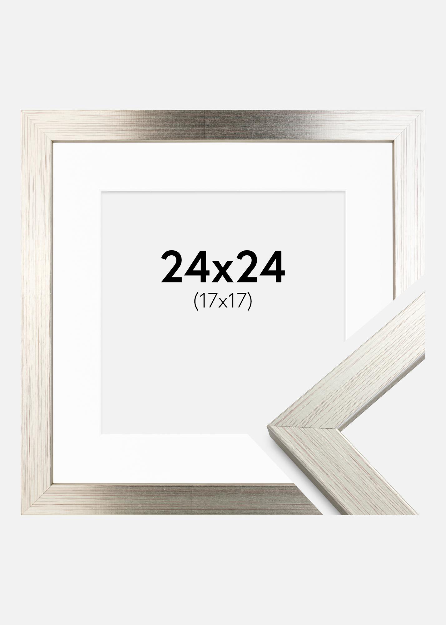 Rahmen Silver Wood 24x24 cm - Passepartout Weiß 18x18 cm