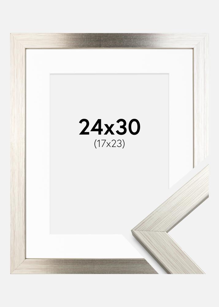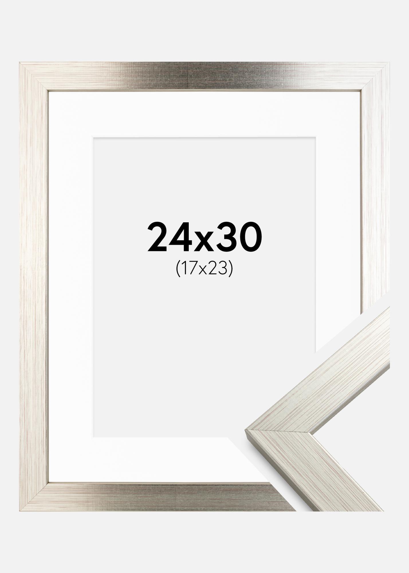 Rahmen Silver Wood 24x30 cm - Passepartout Weiß 18x24 cm
